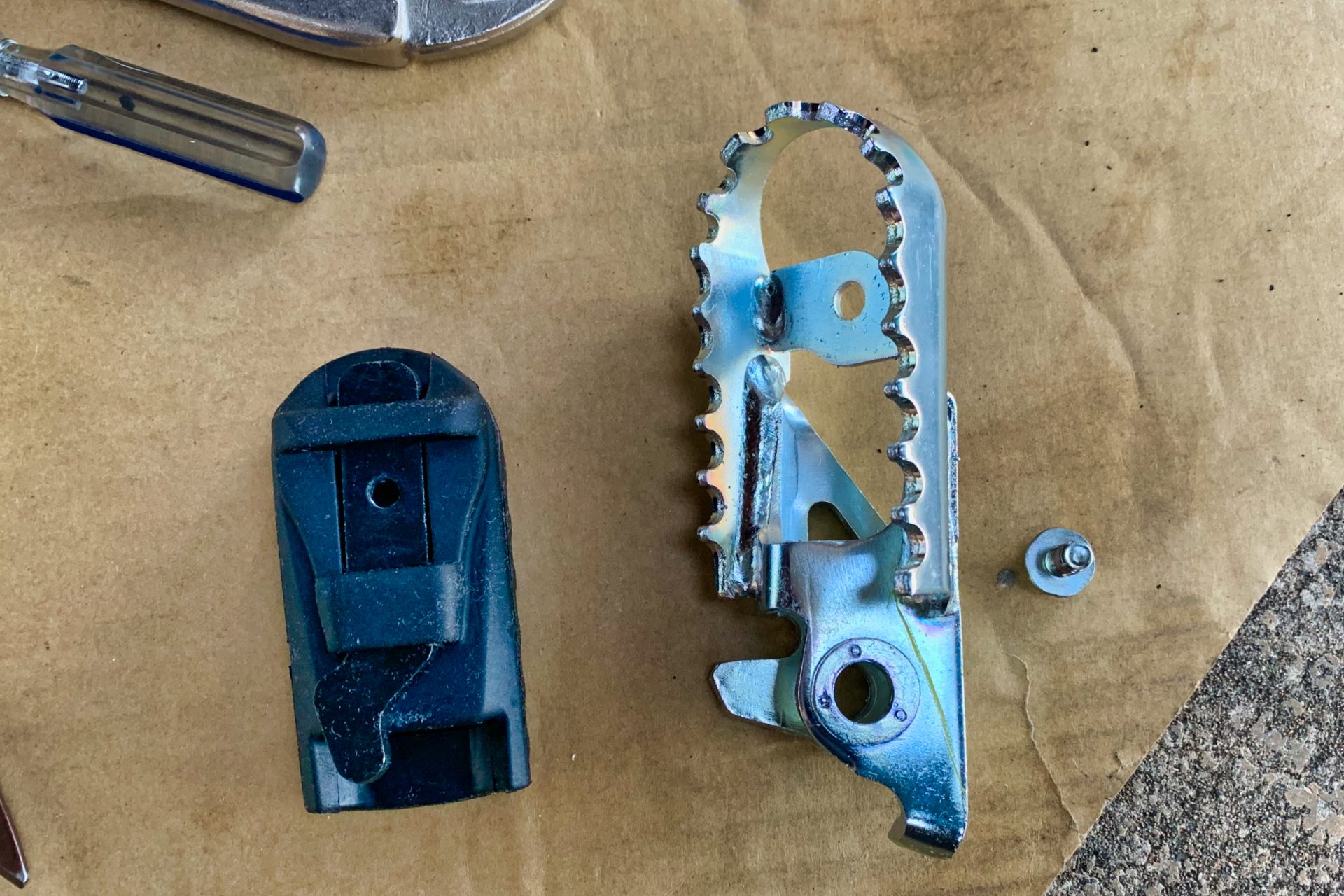 2021年型でモデルチェンジしたMD47 CRF250Rallyからは、上記のような欠点を改善するため、取り外し可能なラバーを標準でステップに取り付けられています。