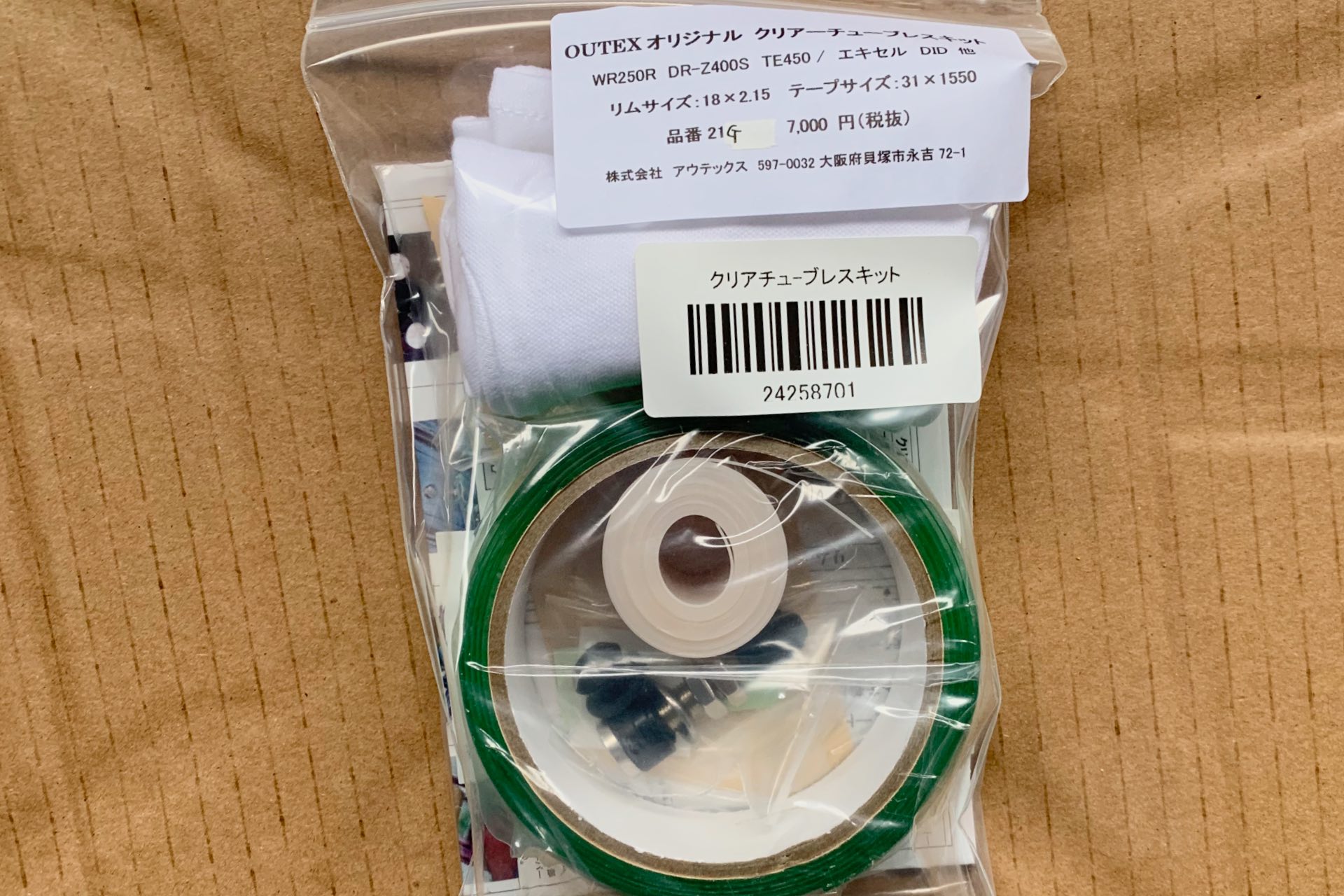 チューブレスキットの選択ですが、比較て実績の多いと思われる、アウテックス(OUTEX)の製品を選択しました。