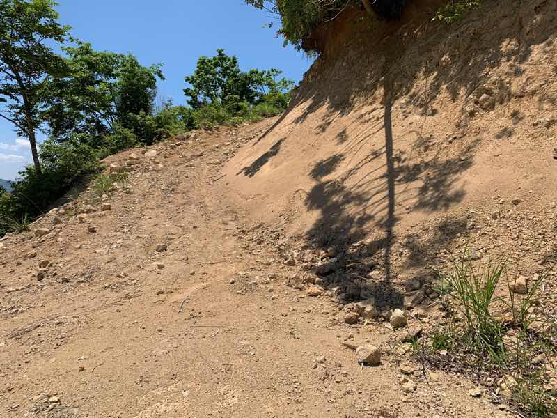 谷底に落ちても樹木に引っかかるところは良いのですが、(良いわけないか)道が崩れているところは、這い上がれませんね。