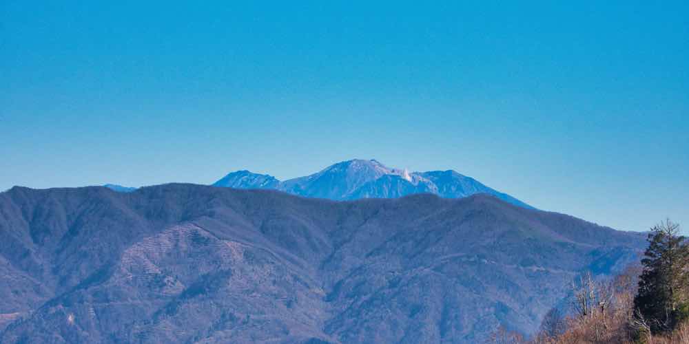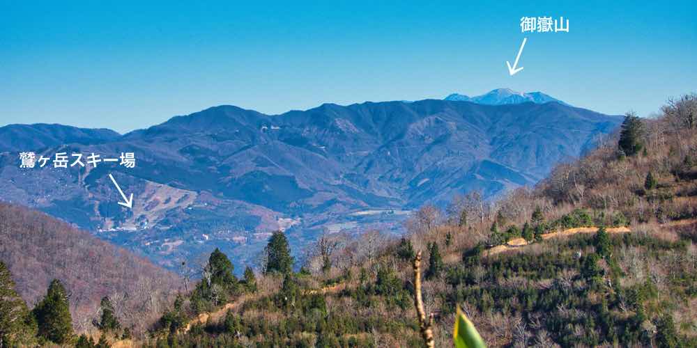 見ている方向を地図上で調べてみると、鷲ヶ岳スキー場の方向に御嶽山が見えるので間違いなさそうです。