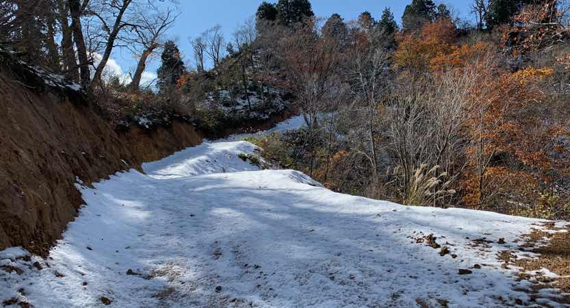 標高が1000メートルを越えているので、日陰部分(北斜面)には雪がありました。(2020/11/05)