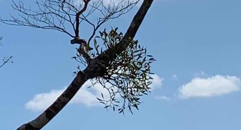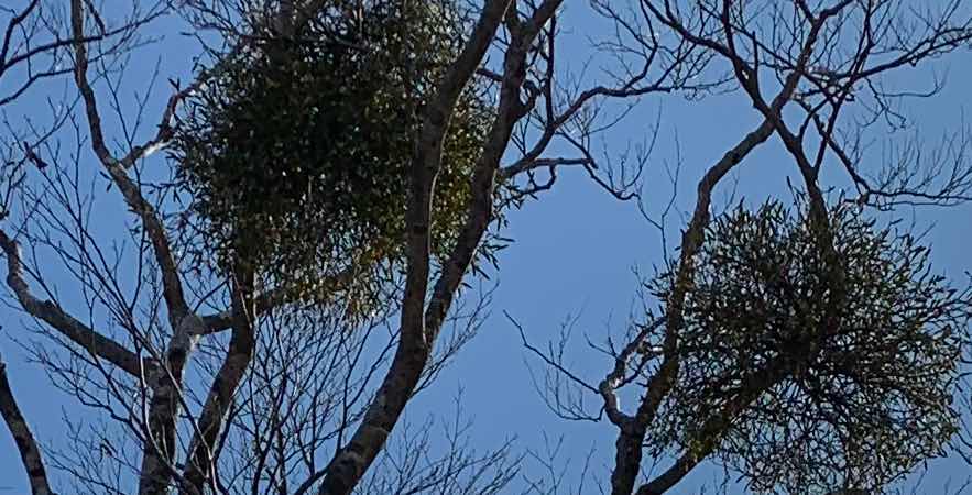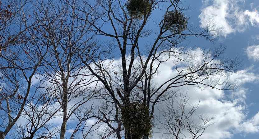 今回の発見は、坂の上に見える葉っぱのない木にこんもりとしたものは?