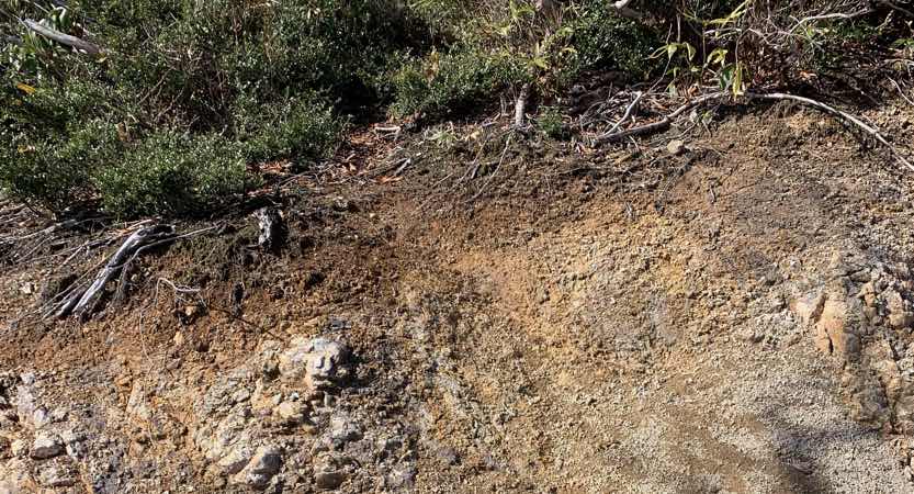 さっきの獣道の林道の反対側にも獣が通ったような土の崩れ方、足跡のような形跡、その先の獣道などの形跡があリました。