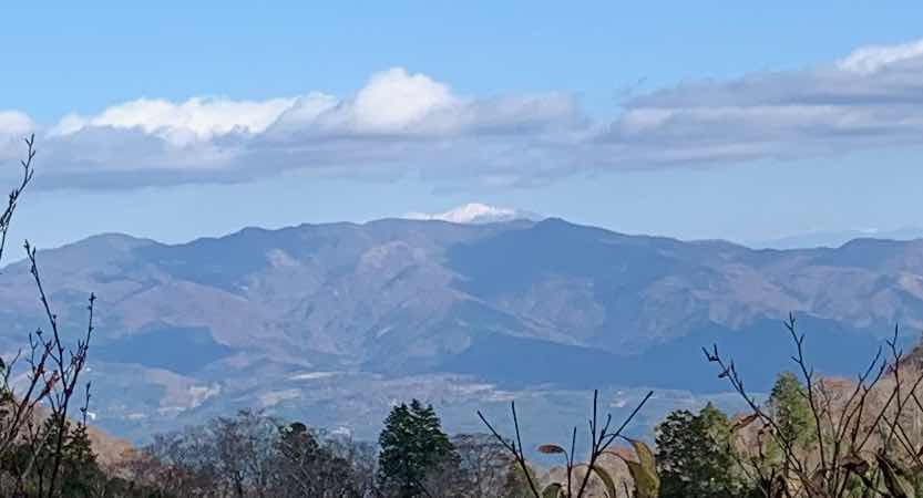 木の枝の葉っぱが少ないので、5月に登った時よりも遠くの景色が見えるように感じます。(山肌には白いものが見えます)