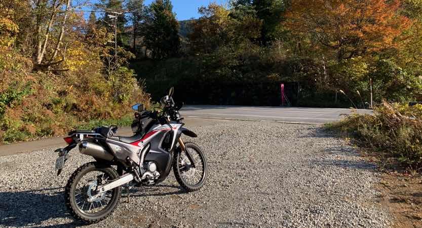 林道の急な斜面を下る時は、登りよりも簡単だなと思って、少し舐めていたのかもしれませんが、バイクのシートに座りながら降っていた時に、ガレたカーブをゆっくりと曲がっていたら、リアタイヤが滑り出してコントロールできなくなってしまい、転倒しそうになりました。(ガレた急な下りで前後のブレーキを操作しながらタイトなカーブで向きを変えるときに、リヤの荷重が抜けて横に滑り出し、フロントブレーキを緩めたいけれど、道路からはみ出しそう、もうバイクを投げ出そうと思ったときに、最後の最後にフロントのブレーキを一瞬緩めたら、たまたまリアのスライドが止まったので、コントロールできるようになりました。ラッキーでした。)