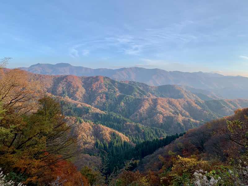谷の開けている方角が、素晴らしく、福井県と岐阜県の県境付近の山々が見えているのだと思います。