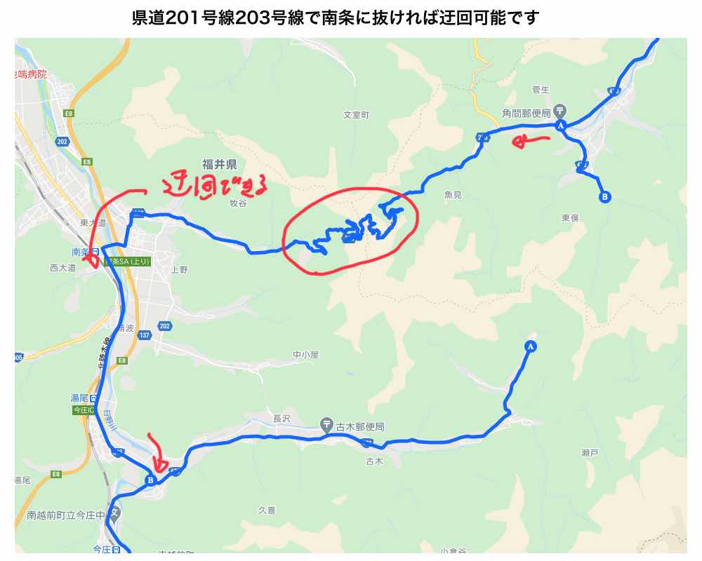 国道476号線の迂回路 森林基幹道 今庄池田線