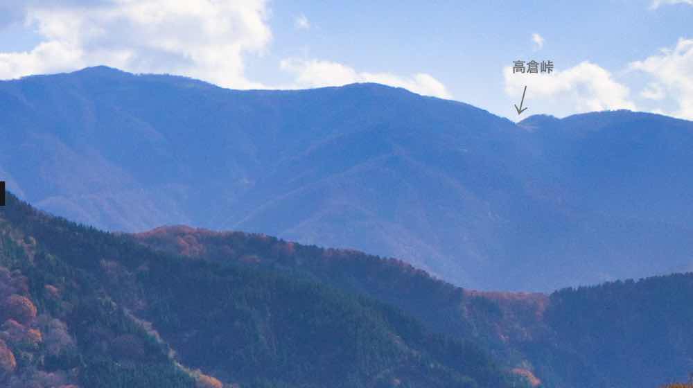 上の写真の空に接するやまなみの右側の凹み部分が高倉峠のようですね!