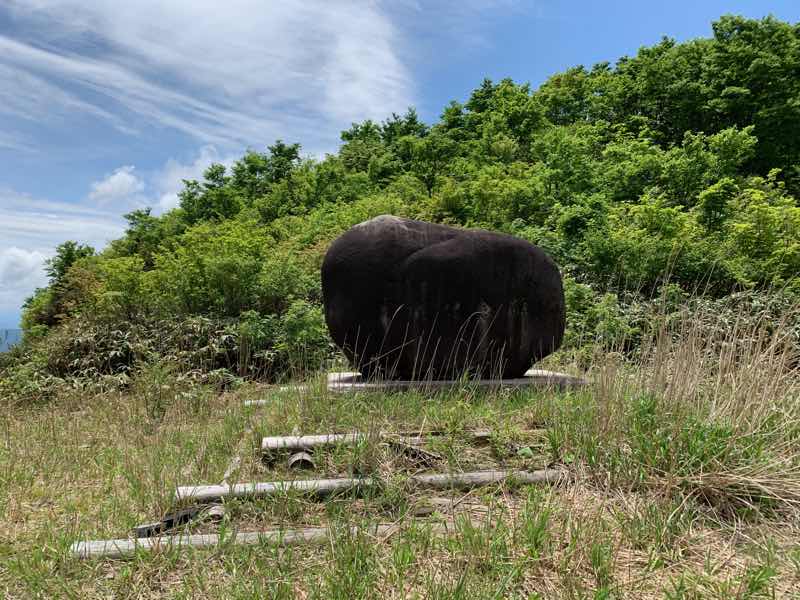 頂上付近の開けたところにある石(石碑)、草が刈られた跡があるので、ある程度は管理されているように思います。