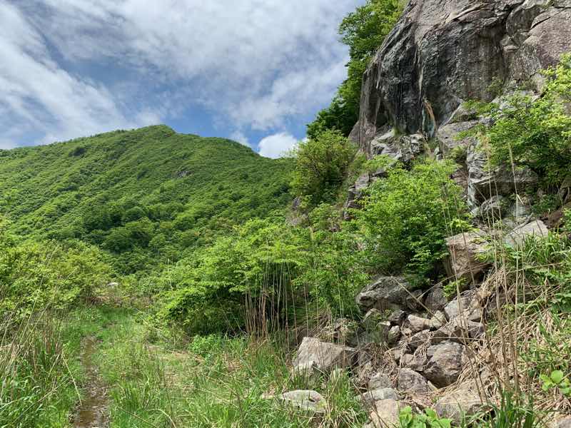 ここから少し登りますが、少し大きめの岩が転がった濡れた短い斜面を上がります。