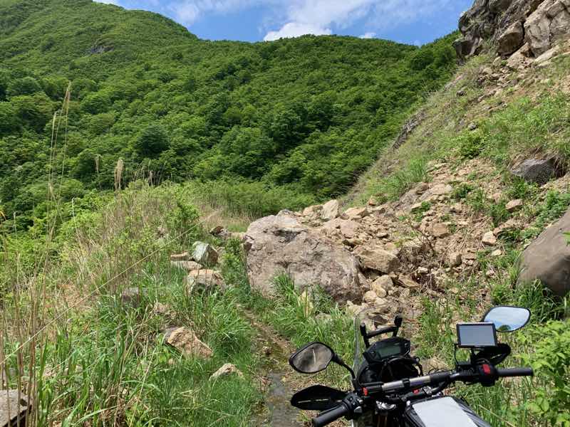 林道岩屋線の最大の敵は道路を塞ぐ崖崩れ