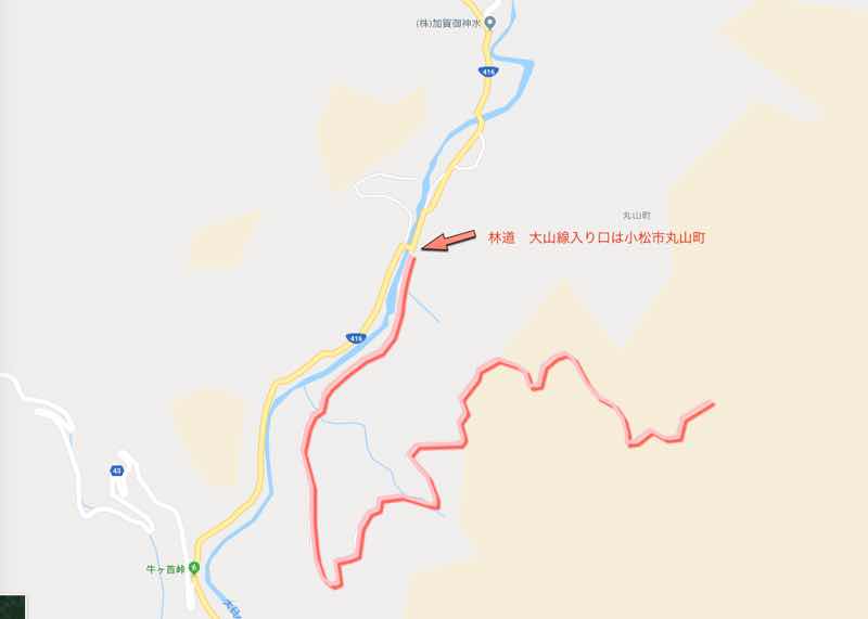 林道 大山線(おおやません)は小松市丸山町から小松市津江町(つえ)を通り白山市左礫町(ひだりつぶて)まで続く林道のようです。