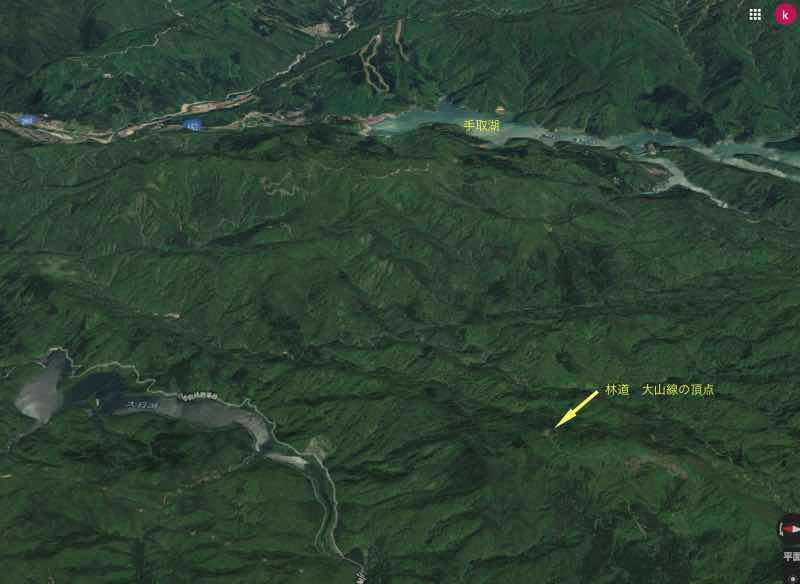 大山林道はGooglelマップの3Dで表示させると山の頂上辺りを通過しているではないか。