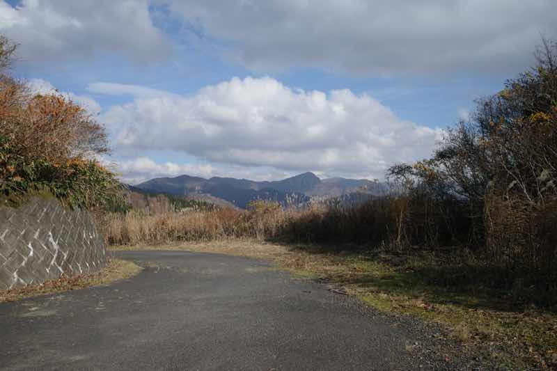 道の向こうに冠山が見えます。