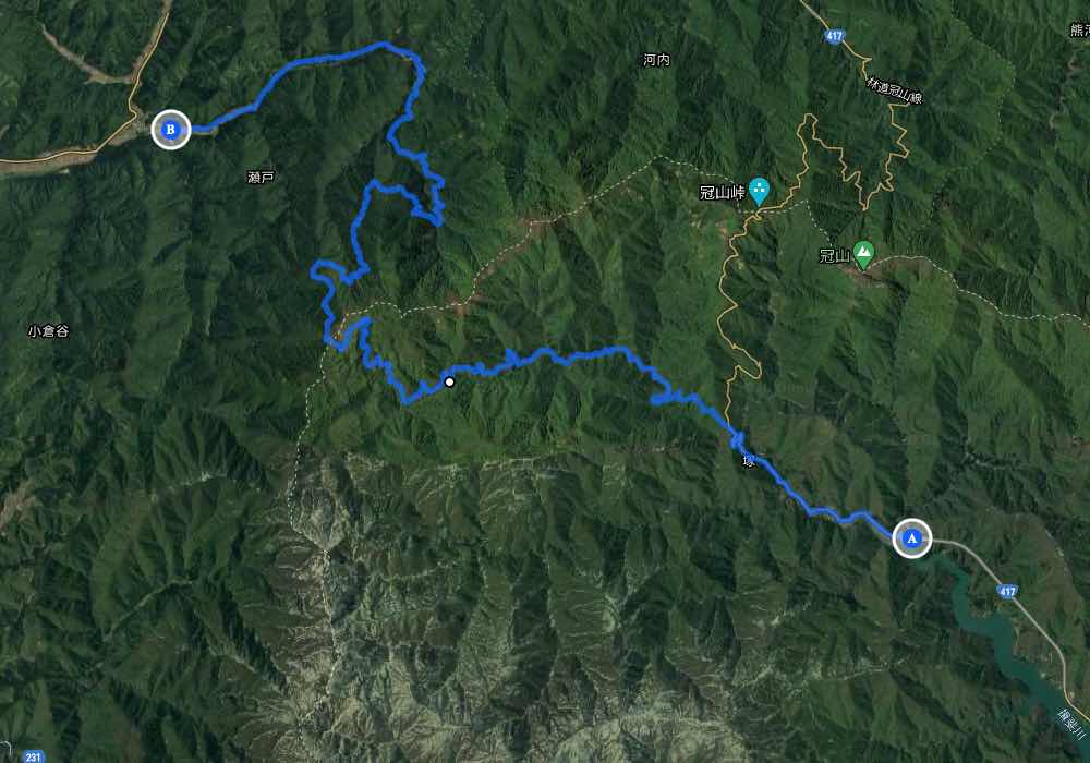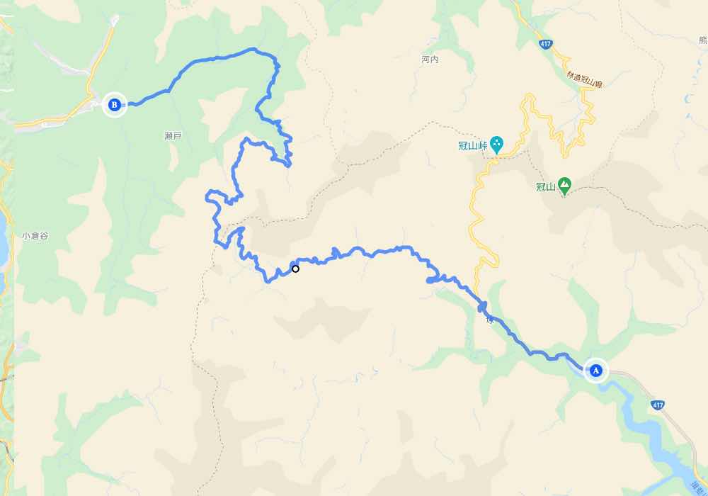 林道塚線は福井県側は南条郡南越前町瀬戸の国道476号線から少し入ったところを起点とし高倉峠の県境を超えて才の沢峠で林道冠山線に合流し共有区間として徳山湖の国道417号線と接続する点が終点のようです。(知らない住所ほど、読みづらいものはない、要するに福井県と岐阜県を峠を越えてつなぐ道です)