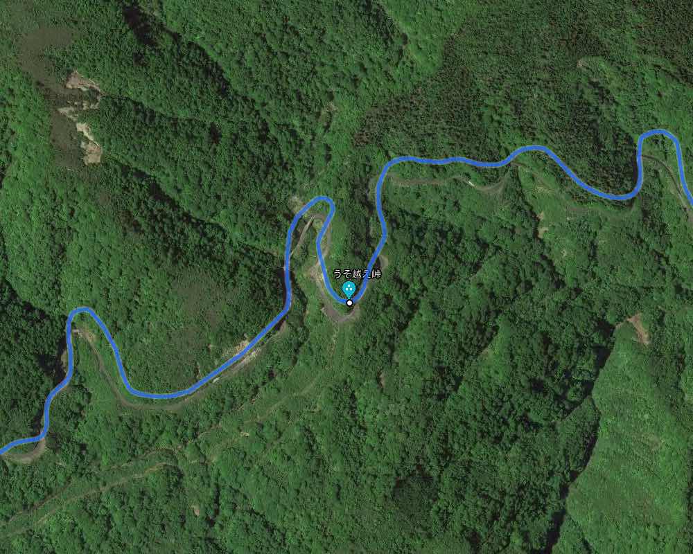 うそ越え峠の航空写真である。