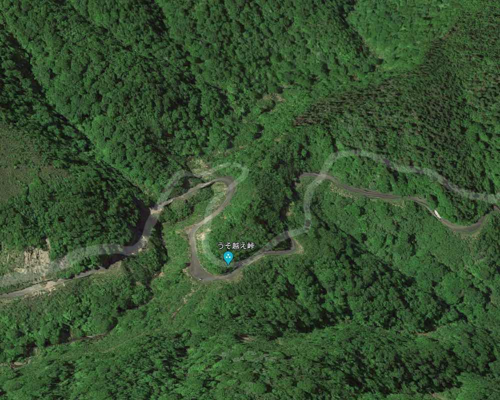 Googleマップを眺めていて、林道塚線の岐阜県側、高倉峠と才の沢峠の間の谷ぞいの道路に「うそ越え峠」というところがあるのを発見しました。(何で「うそ」嘘、ウソ、なのか?)