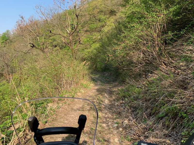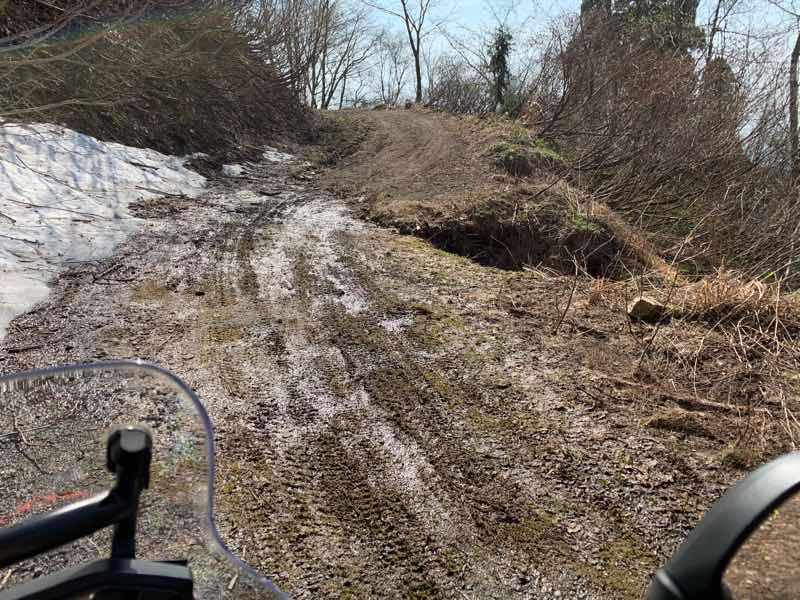 快適とは言いましたが、オフロードバイクでブロックパターンでないと、やはり難しい林道です。