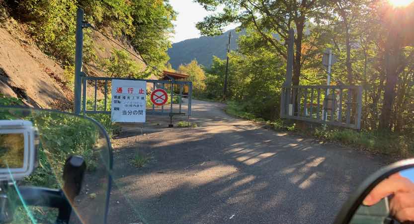 ダム湖から少しいくと半分だけゲートを閉じた通行止めの案内がありました。