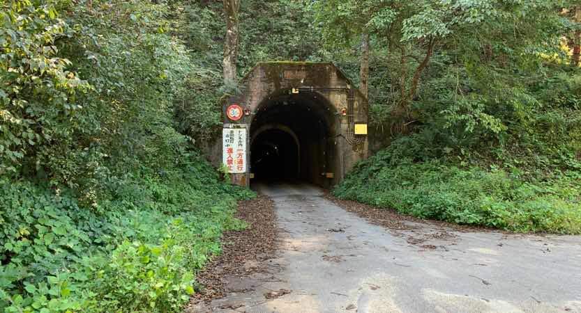 刀利ダムの上を通り過ぎて、すぐ右手にトンネルの入り口があります。