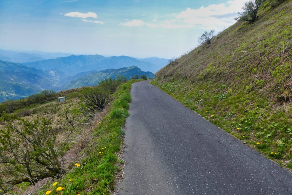 県道363号(地図上では黄色)吾川スカイパークまでは、道幅は狭いが舗装路も整えられており走行の不安は少ないと思います。