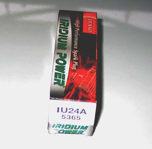 | キャブレターに残っているガソリンがあるので、燃料タンクを外した状態でエンジン始動を試みる。 チョークを引いてセルで始動するが、チョークを戻すとエンジンはすぐに止まってしまう。 いったんキャブレターを取り外し、パイロットスクリューを弄る事にする。 予備のジェット類が全くないので、セッティングはチョウいい加減で、パイロットスクリュウーを標準の1.5回転戻しから、燃料を濃いめにするために3回転戻しとした。 エンジンをセル始動してみると、チョークを引かなくとも簡単にエンジンがかかった。 キャブレターに残るガソリンも少ないし、 細かなセッティングはすぐにはできないので、組み立て作業に。 ガソリンタンクを取り外した状態なのでエンジンのヘッド周りはすっきりしている。 やはり、点火プラグを交換してくださいと言われているように感じたので、デンソウのイリジウムプラグに交換した。 IU24Aという品番で8番相当の熱価だと思う。 |
