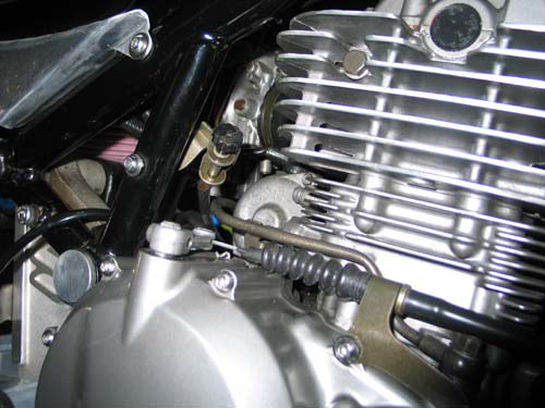 BST33の純正キャブには、メインジェットにアクセスするためのキャップが付いているけれど、手が入るスペースがないので物理的には無理だろう。また、点火プラグ交換も燃料タンクが邪魔なので、難しい。