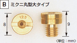 | メインジェットはミクニ丸型大タイプ(形状Bタイプ)が互換性があるようだ。 ノーマルの番数が112.5なので DAYTONA製 メーカー品番 31094 番数 120,125,130,135,140,145 各1個 定価1,260円を注文する。 |