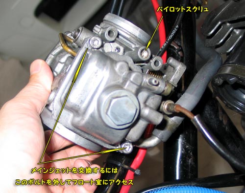 パイロットスクリュは、専用のドライバーがあればいちいちキャブを外さなくても調整可能だが、どうせメインジェットの交換が必要なので、同時に行えば良いか。