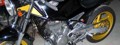 | 前々から、純正のサイドカバーは大きくフレームを覆い隠してしまうのでグースの特徴的なパイプフレームの良さをスポイルしてしまう。 他のオーナーのウエブサイトでも、そのような意見は多いのではないかと思う。 きれいなパイプフレームを採用したヤマハR1-Zはサイドカバーでフレームを隠すことなくデザインしているので、スズキのデザイナーもサイドカバーにマン島のグースネックのコーナーをあしらうような粋な計らいはしなくて良かったのではないかと思う。 形状や材質等自作できそうな方法を考えていると、FRPで作ることやアルミを使って作るのが、自分でも出来そうな気がする。 最終的には、アルミ板を並べてフィンを作るように並べるのが良いのではないかと考えた。 |