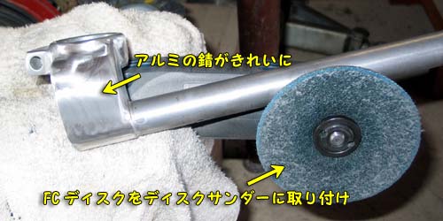 研磨を開始することに。錆が多かったので、最初はFCディスクで錆を削り取った。
