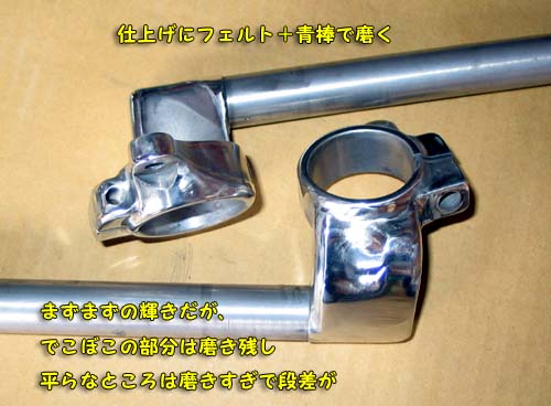 次にフェルトと青棒で磨くと、光り輝く鏡面仕上げになった(細かな傷は残っている)と自負している。