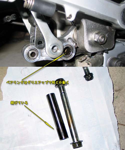クッションレバーの中央の部分を外してみると、結構硬くベアリングの部分が錆びて固着していた。