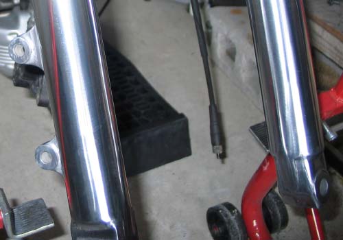 | フロントフォークのアウターチューブの塗装が浮いてアルミのサビが目立っていたので、フロントサスペンションのメンテナンスをかねて、研磨することにした。 |
