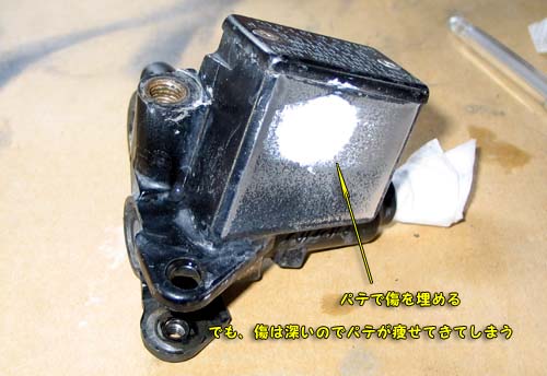 2回くらい盛って乾燥させ面だし研磨するが、上手く傷が消えない。