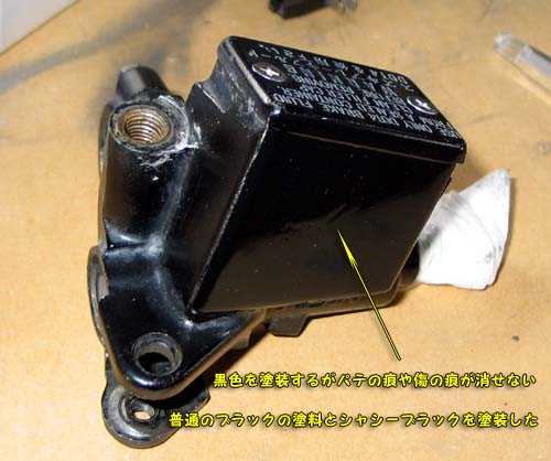 中古品は、リザーバータンク部分に傷があり、この傷を見えなくする必要がある。(もっと、きれいな部品を選べよと言われそうだけど、安さに負けたけど、結局塗料等で高くついた)