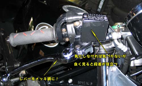 レバーは新たにメッキタイプ(レバーの厚みがメッキのためか純正よりも0.3mmくら厚いのでレバーのホルダー部分を少しヤスリで削った)に変更して高級感を重視した。
