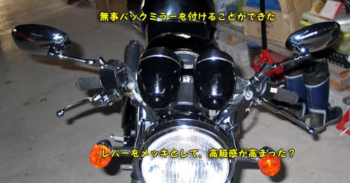 バックミラーはメッキタイプだが、前回よりもコストを下げたので、クオリティーがだいぶん低下した、けれど、ずいぶんと軽量化ができた。