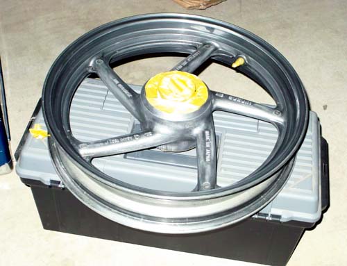 | ホイールの塗装を完璧に乾燥させるために、半年から1年間はホイールバランスのオモリは取り付けないことにした。 ホイールに傷が付いたり両面テープで塗装がはがれたりするのを防ぐためである。 ホイールのバランスは確認していないので、スピードは控えめに乗る予定だ。 |