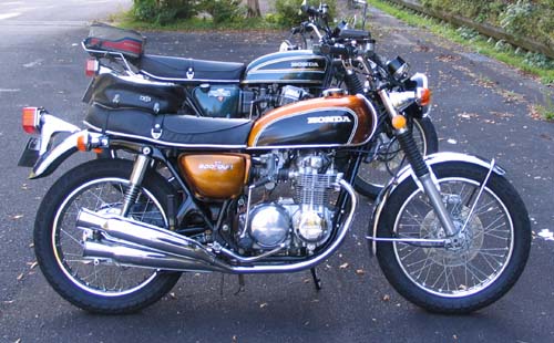 上の写真の手前のゴールドのタンクがCB500でマフラーのテール部分がラッパのような形状なのが特徴である。雑誌では、ヤマハTX500というDOHC8バルブツインエンジンのバイクがライバルとして紹介されていたのが印象に残っている。