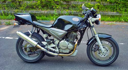 フロントサスは、ブレーキングで簡単にフルボトムしてしまうので、フロントフォークのオイルを少し粘度の高いものに変更する必要がある。