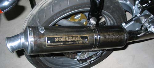 | ヨシムラのカーボンサイレンサーとステンレスエキパイのマフラーの取り付けを行った。フランジのボルトは耐熱グリスを付けて、取り付ける。 本来ならば、ガスケットを交換するのだけど、今回もノーマルのガスケットをそのままにして取り付けたが、アイドリングでも軽く吹かしても排気漏れはなさそうであった。(新品のガスケットを用意してあったけれど。) |