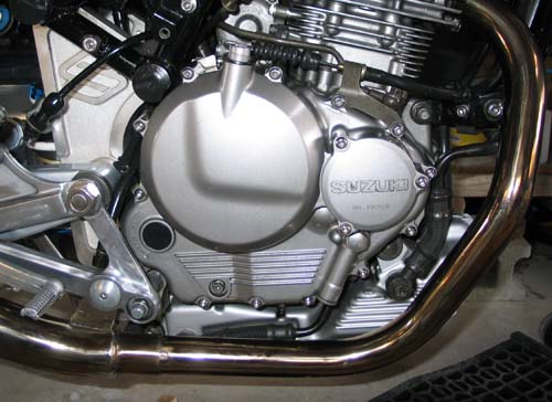 エンジンのクラッチ側のカバーのボルトを、ステンレスのボタンボルトに付け替えた。