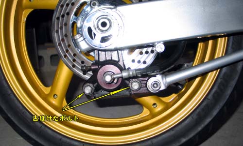 ノーマルのディスクブレーキのキャリパー部分のネジはキャップボルトだけど、錆びやすいようだ。
