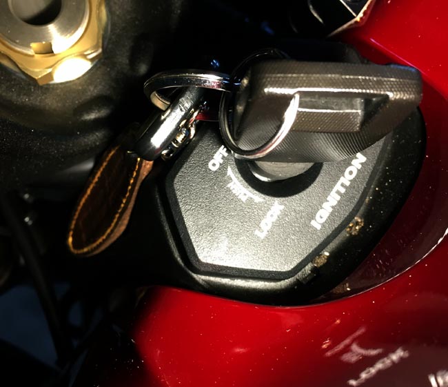 GSX-S1000Fのキーを付ける場所は、燃料タンクのすぐ前にあって、キーホールまでの距離があって、深く沈み込んでいます。