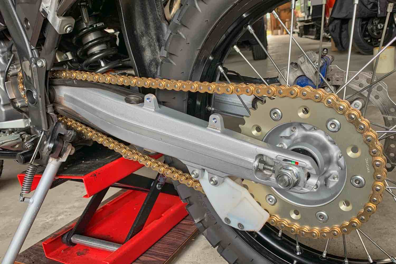 シールチェーンの交換は、専用のカシメ工具が必要ですが、慣れれば難しくないので、トライしてみるのも良いかな。ゴールドチェーンにすると燃費が4km/lていど向上した。