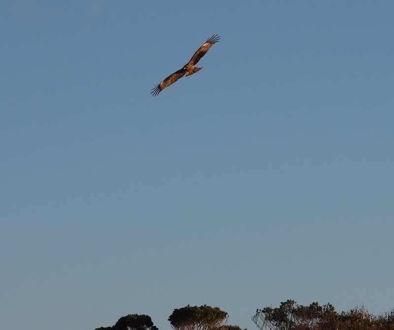 キャンプサイトの上空では、7羽のトンビが円を描きながら、風に乗って空高くまで舞い上がります。