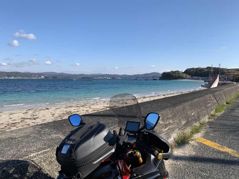 この観光農園キャンプ場は、バイクの乗り入れができるのと、少し歩けば、とっても綺麗な目の細かい白砂の砂浜に出ることができます。