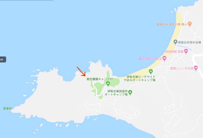 志摩半島の先で御座白浜海水浴場の南側に位置します。