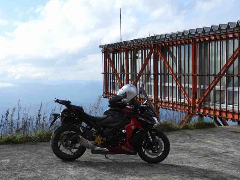舗装された林道からこの建物があるところまではオフロード100メートルくらい。それもバイクに苦手な砂利道があって、特に大きなバイクは注意した方が良いと思います。